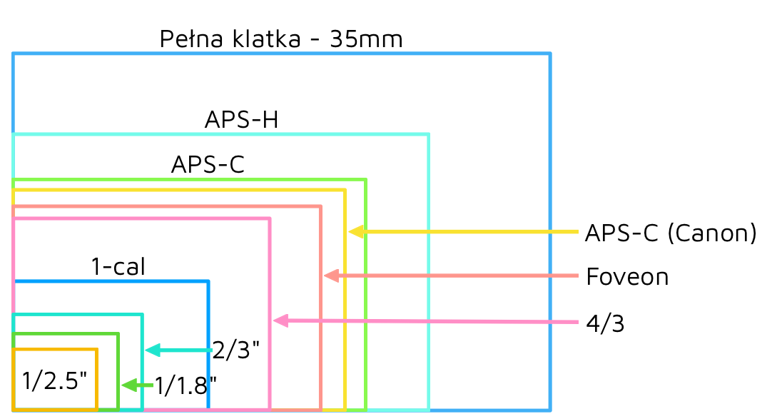 Crop factor to nic innego jak stosunek przekątnej aparatu o matrycy pełno klatkowej do przekątnej mniejszej matrycy.