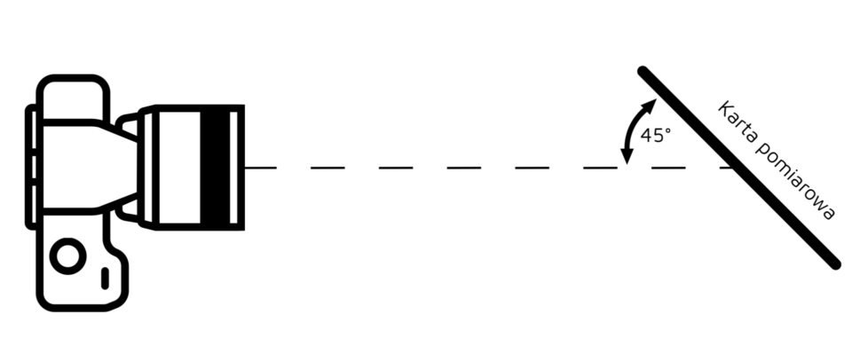 Pierwsza z linii nie jest umieszczona dokładnie w odległości 1,41cm od środka a będzie to dokładnie 1cm na wykonanym przez nas zdjęciu pomiarowym. Wynika to z faktu, że naszą kartę powinniśmy umieścić pod kątem 45 stopni od osi optycznej obiektywu. Pozostałe zaznaczone linie umieszczone są w odległościach 2,82cm dla „2”, 4,23cm dla „3”, co symbolizuje dokładnie 2 i 3 cm na zdjęciu pomiarowym.