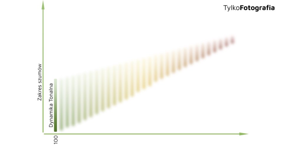 Uzyskane w ten sposób dwa zakresy posiadają bardzo ciekawą cechę w momencie przełączenia się na drugi zakres zaczyna rosnąć dynamika oraz spadają szumy. Oczywiście wraz z dalszym wzrostem czułości sytuacja się powtarza jednak w praktyce pozwala nam to na fotografowanie w kiepskim świetle z wyższą dynamiką oraz mniejszymi szumami.